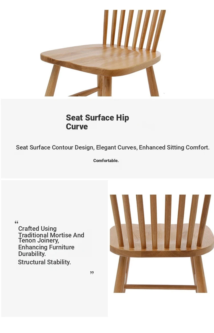 Solid Ash Wood Dining Chair - Scandinavian Minimalist Windsor Style, Perfect for Dining Room, Bedroom, or Makeup Area - Comfortable and Elegant Design for Home Use