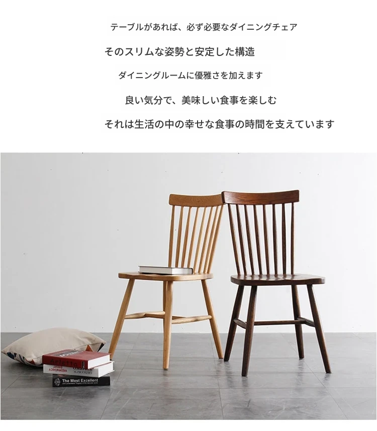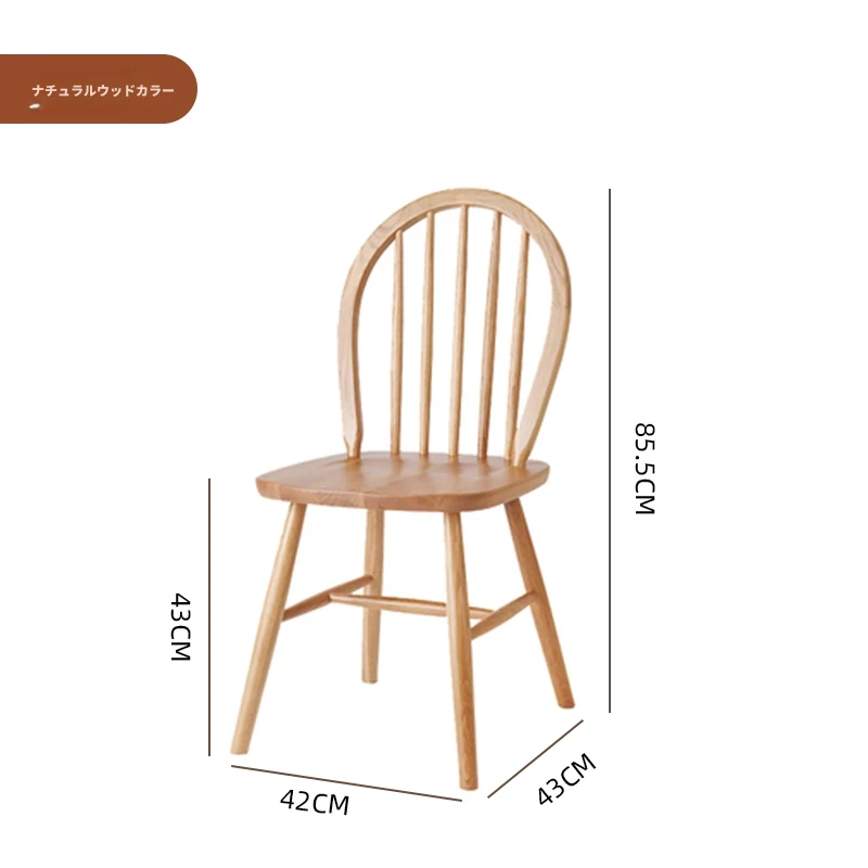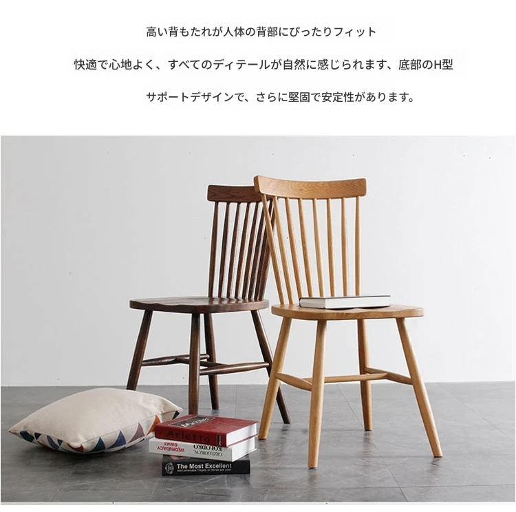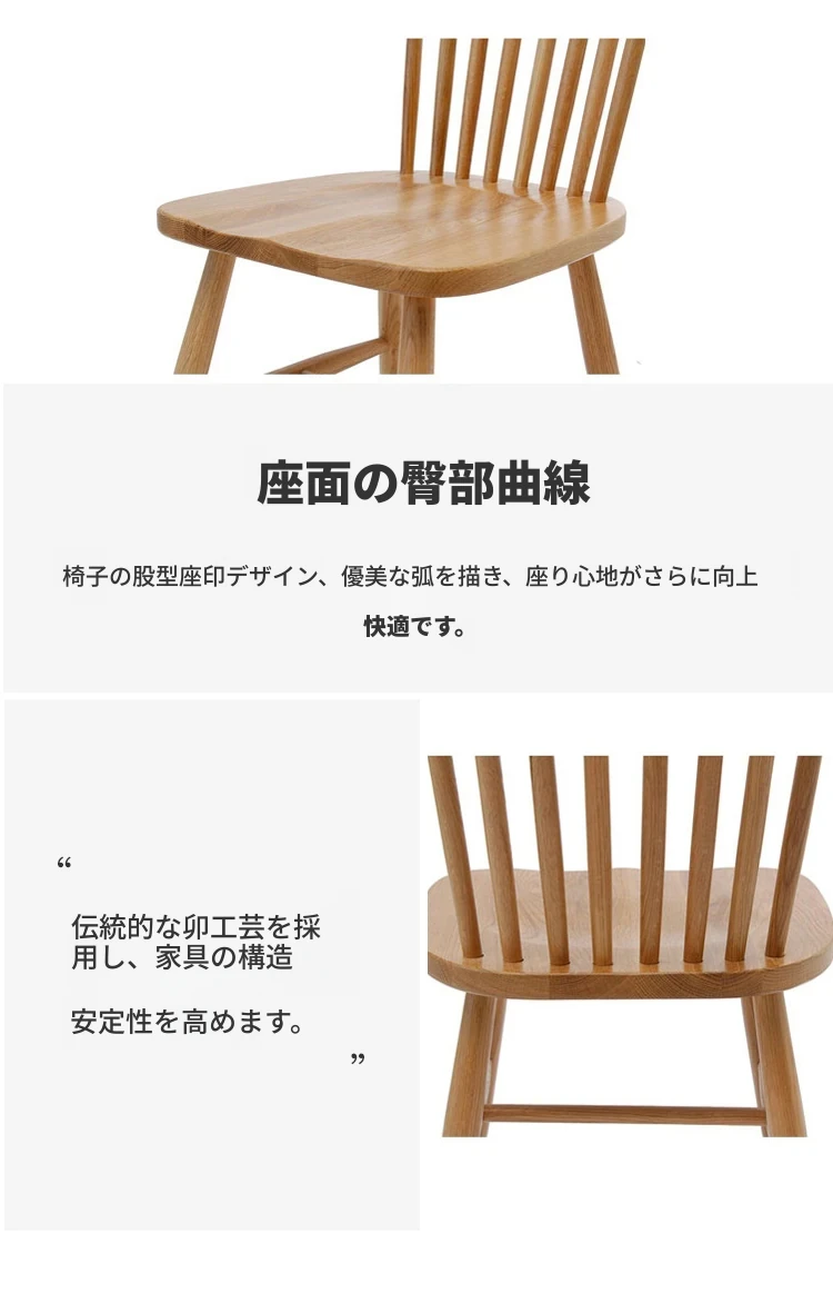 純粋な無垢材使用のホワイトアッシュ製ダイニングチェア 北欧スタイルのシンプルなウィンザーチェア 寝室や化粧台にも最適な家庭用背もたれ付き椅子。高品質な木材で、心地よい座り心地を実現!