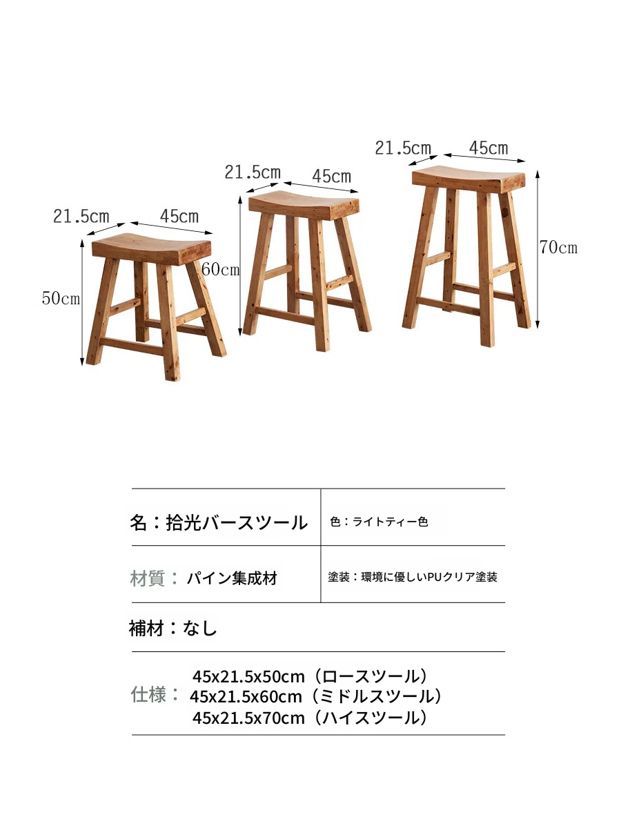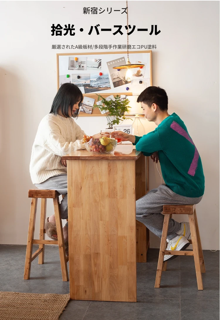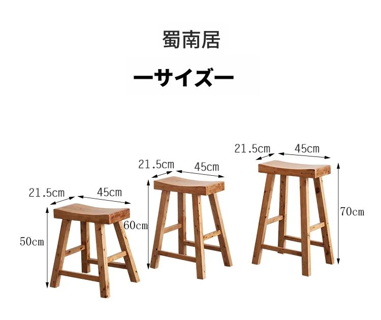◆天然無垢材使用のバースツール!日本風の低いスツール、木製のベンチ。家庭用ダイニングテーブルにぴったりなヒノキ製の独立型スツール。小さなスペースにも最適!