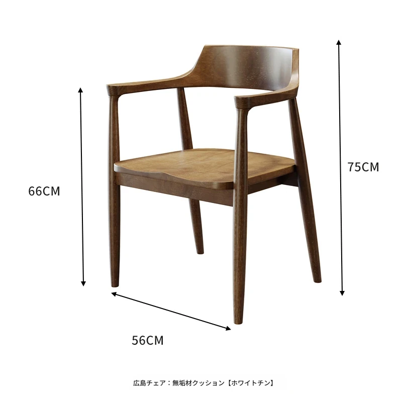 北欧スタイルの無垢材ダイニングチェア|広島椅子オリジナル|快適な背もたれ付き|シンプルで洗練されたデザイン|家族や友人との食事に最適な一脚!