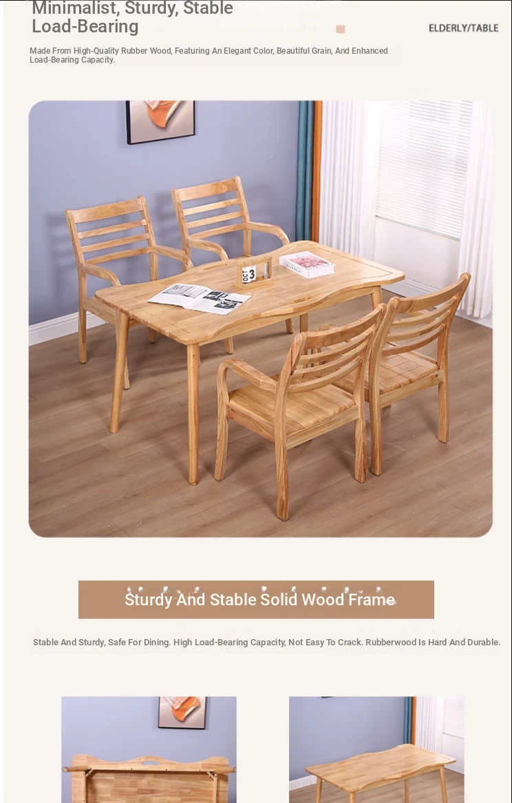 Solid Wood Dining Table and Chairs for Senior Living Facilities - Elderly-Friendly Furniture for Assisted Living and Retirement Homes, Perfect for Comfortable Dining Experiences