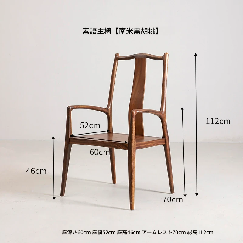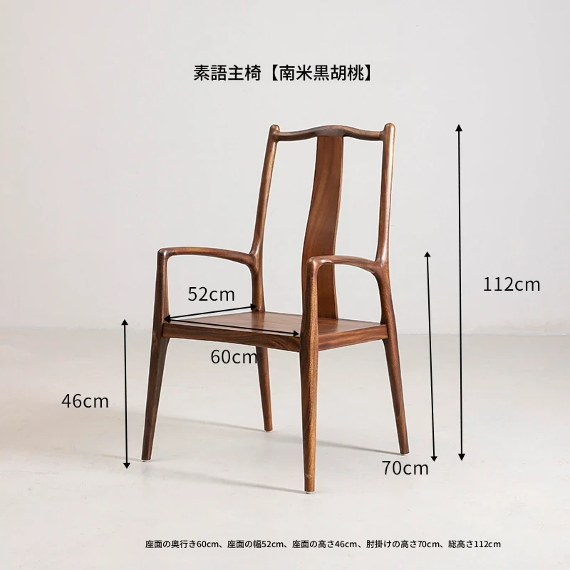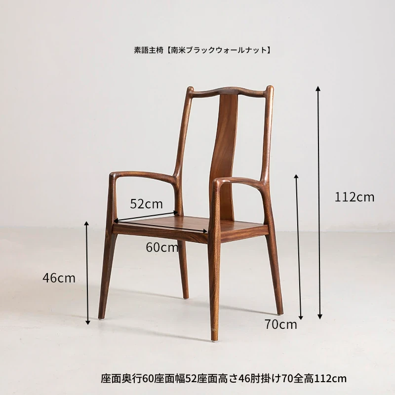 南米産ブラックウォールナット無垢材ダイニングチェア - 軽やかで高級感漂う2025年新作、背もたれ付きのコンパクトなティーチェア、家のインテリアにぴったり!