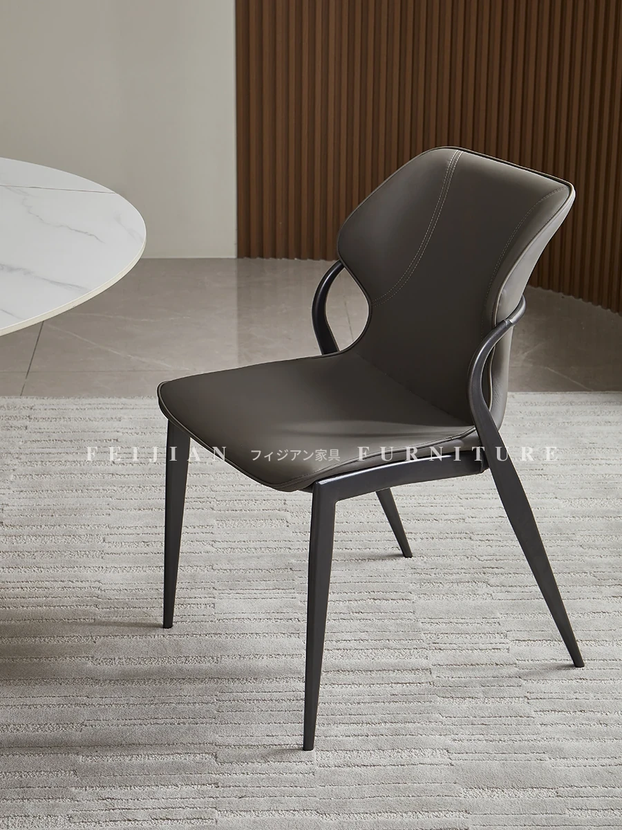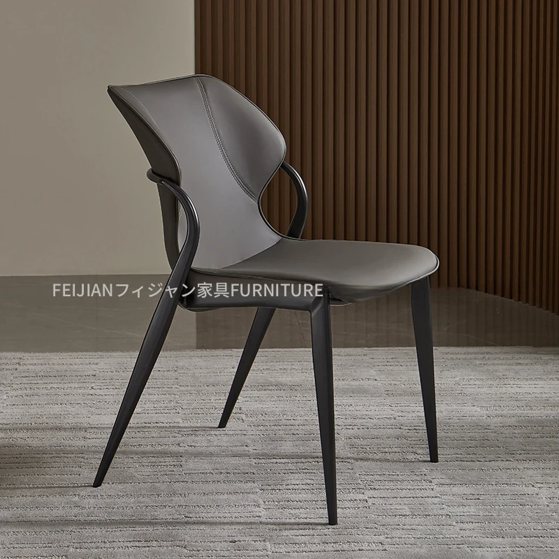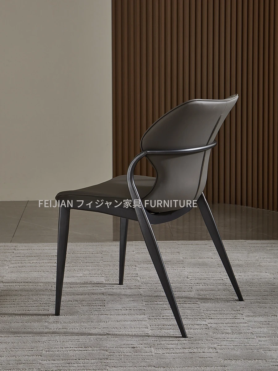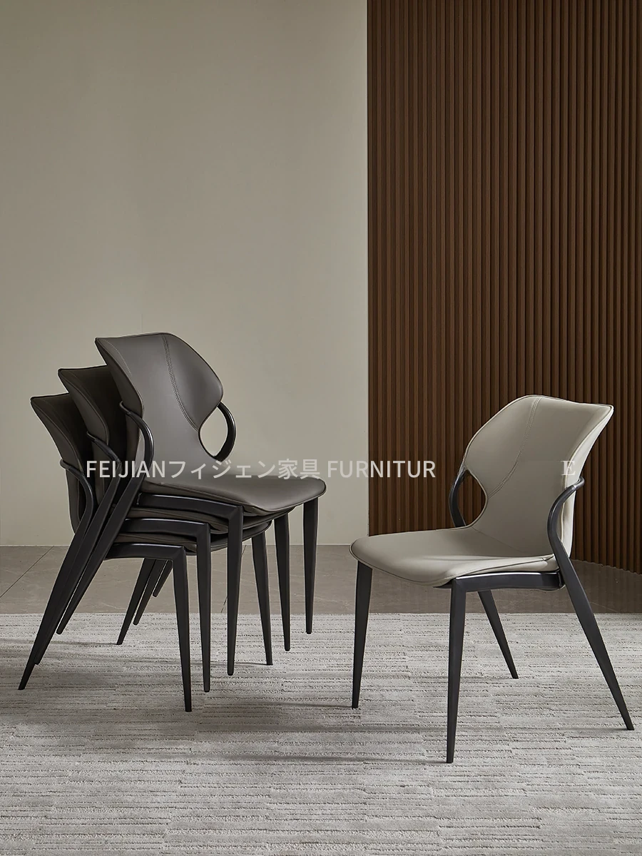 スタッキング可能なダイニングチェア|省スペースでおしゃれなイタリアンミニマリズム|高級感あふれるレザー製|小さなお部屋に最適なレストランアイランドテーブル用背もたれ付きチェア