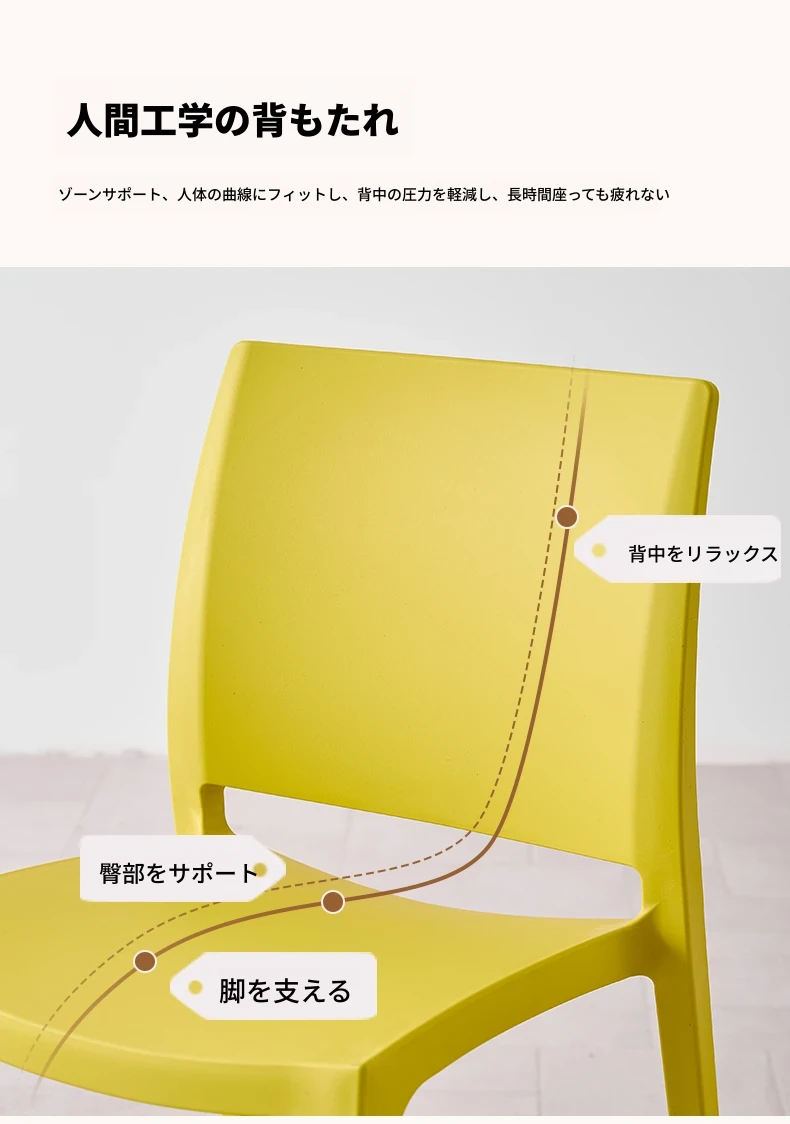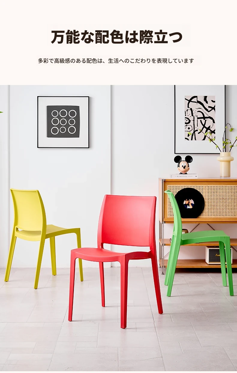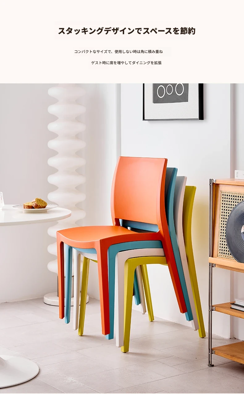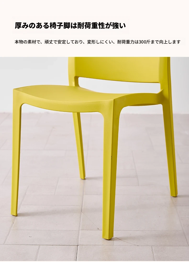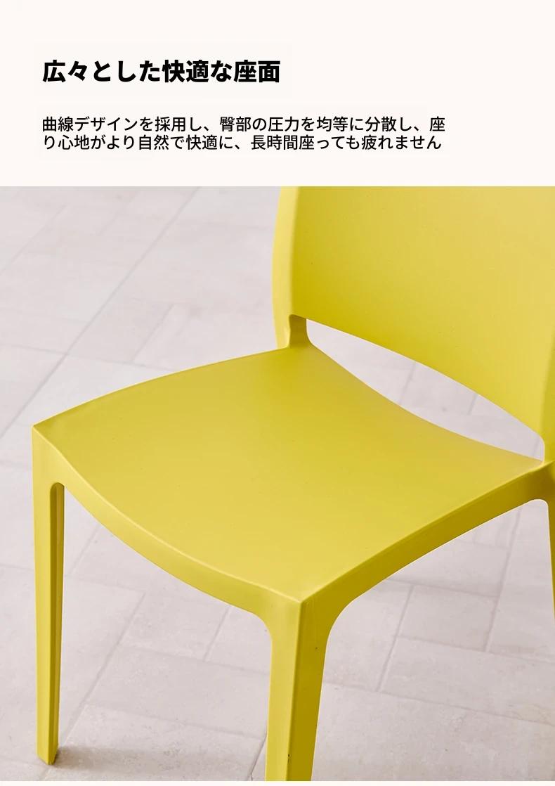 スタッキング可能な軽快な高級感のある北欧スタイルの椅子!モダンでシンプルなデザインのプラスチック製ダイニングチェアは、家庭用・商業用どちらにも最適。おしゃれなインテリアにピッタリのアイテムです!