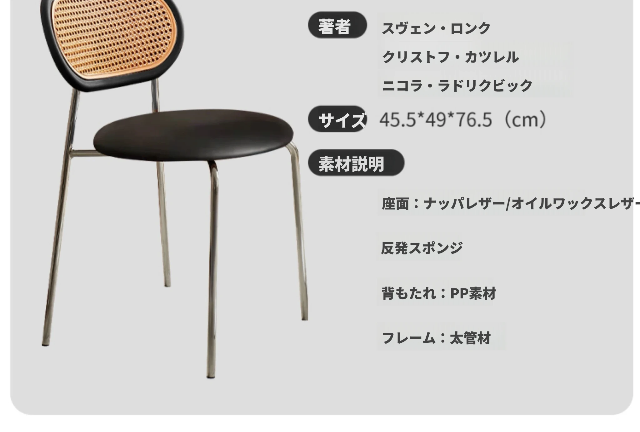 黒色インジェクション成形バックレスト★ブラックマットレザーシート-シルバーレッグ