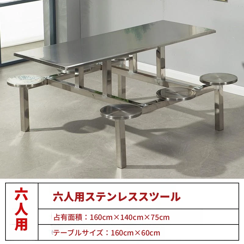 6人用ステンレス円形スツール強化型 テーブルサイズ160cm*60