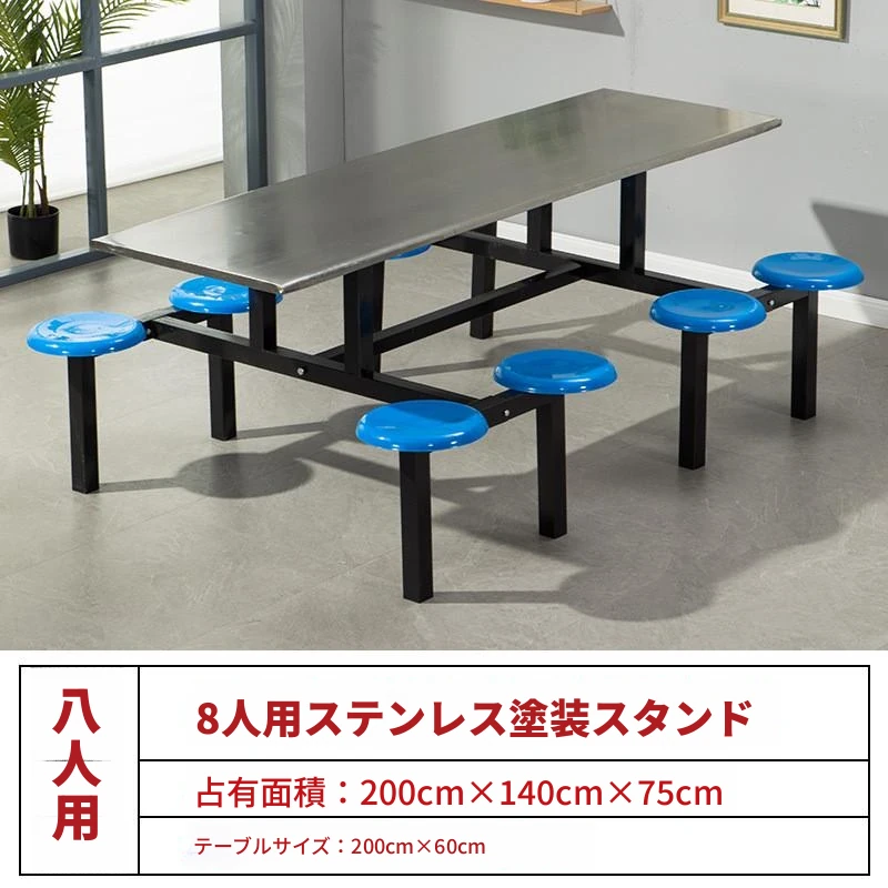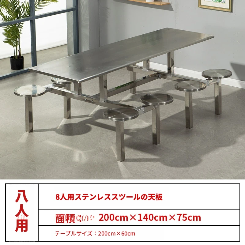 8人用ステンレス円形スツール強化型 テーブルサイズ200cm*60
