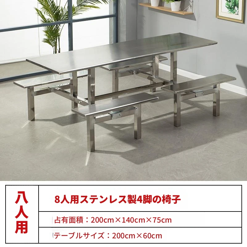 8人用ステンレス4本スツール テーブルサイズ200cm*60