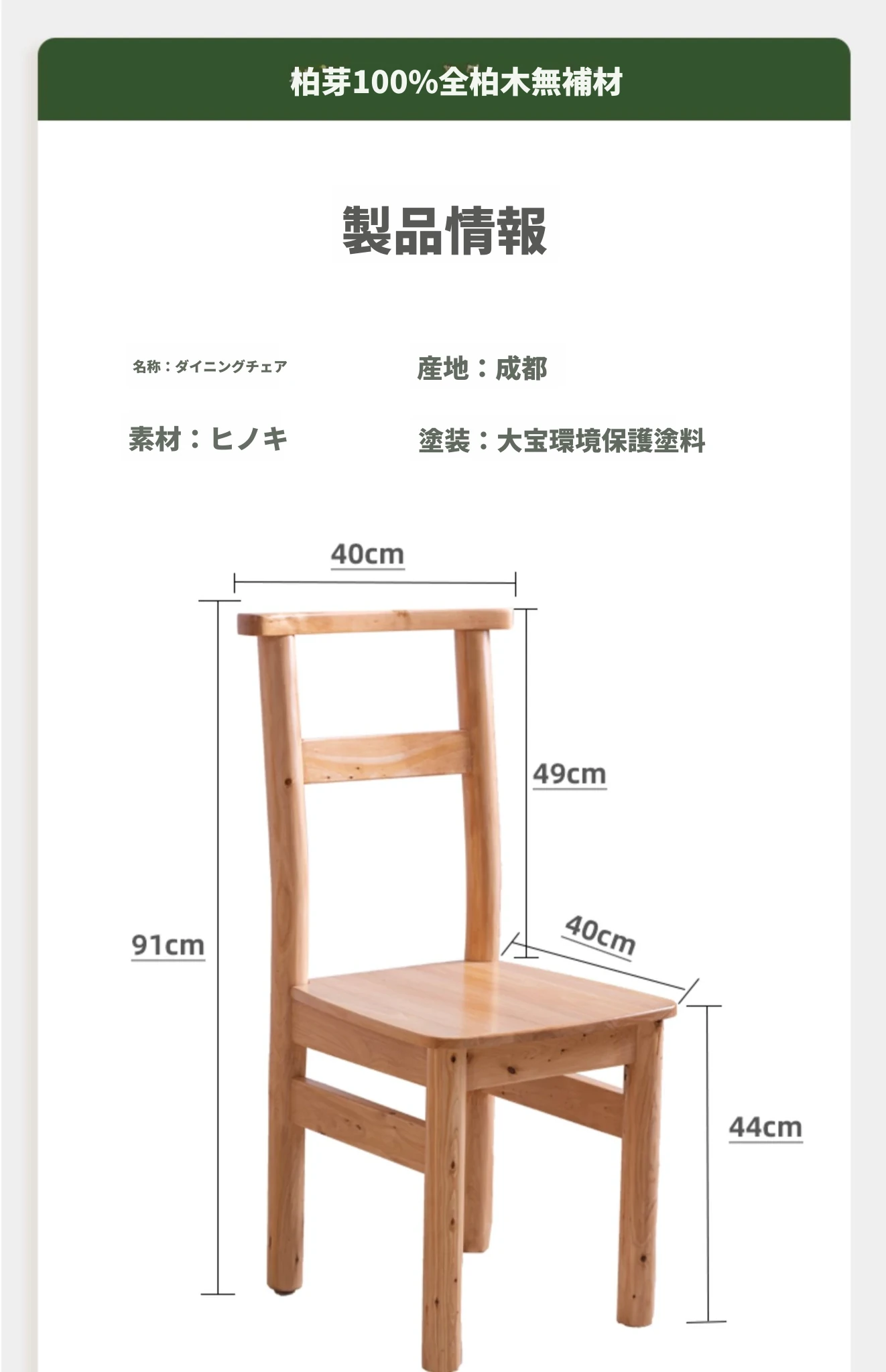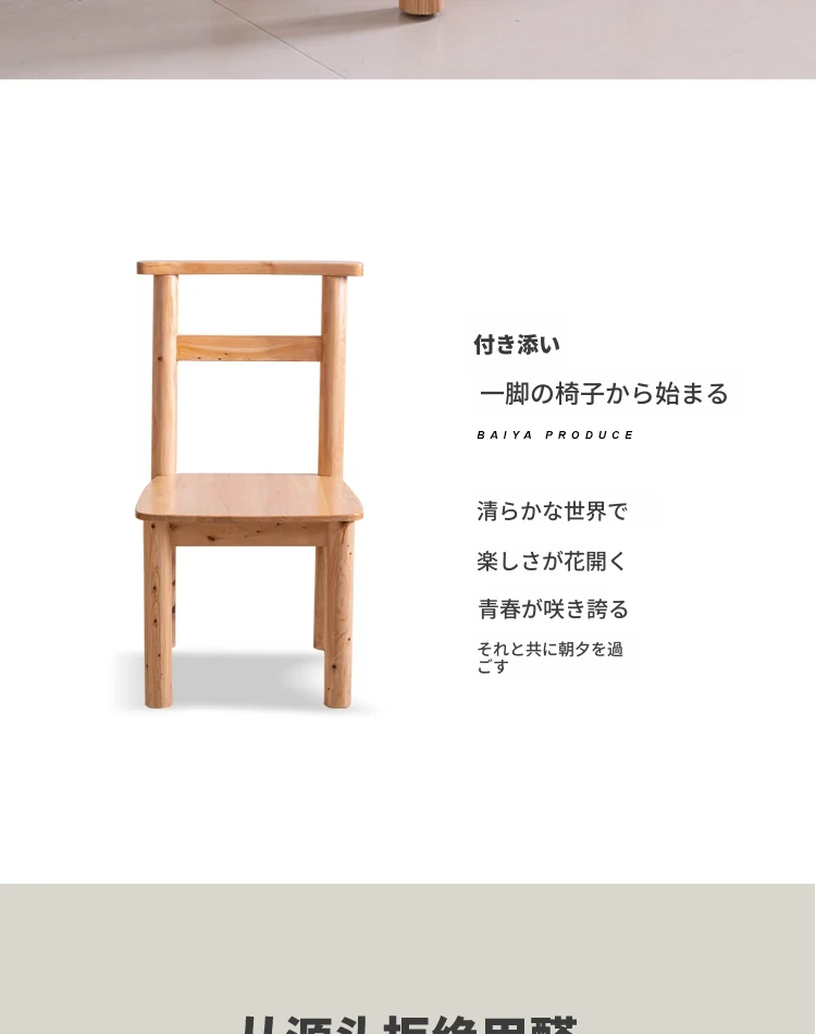 シンプルな無垢材ダイニングチェア - 家庭用、天然木製の背もたれ付き、和風ひのきチェア。スタイリッシュでリラックスできる書斎椅子、レストラン家具に最適!