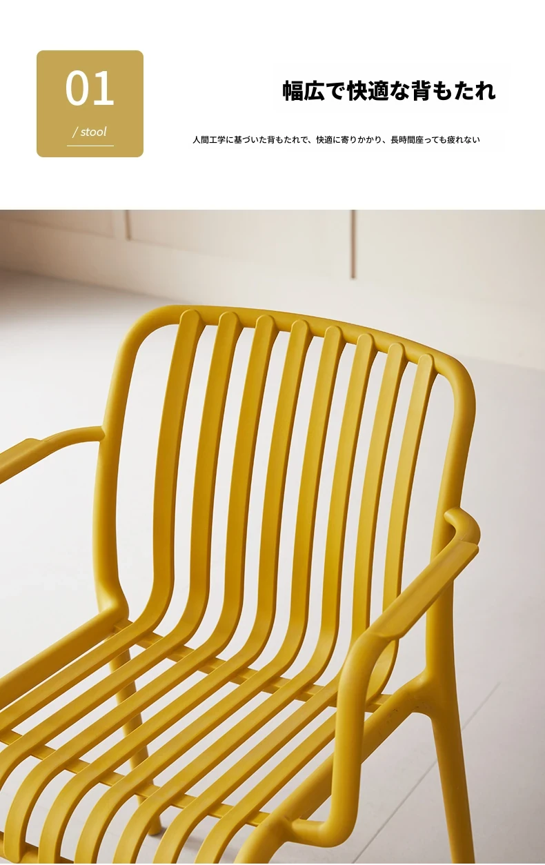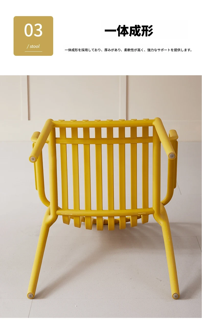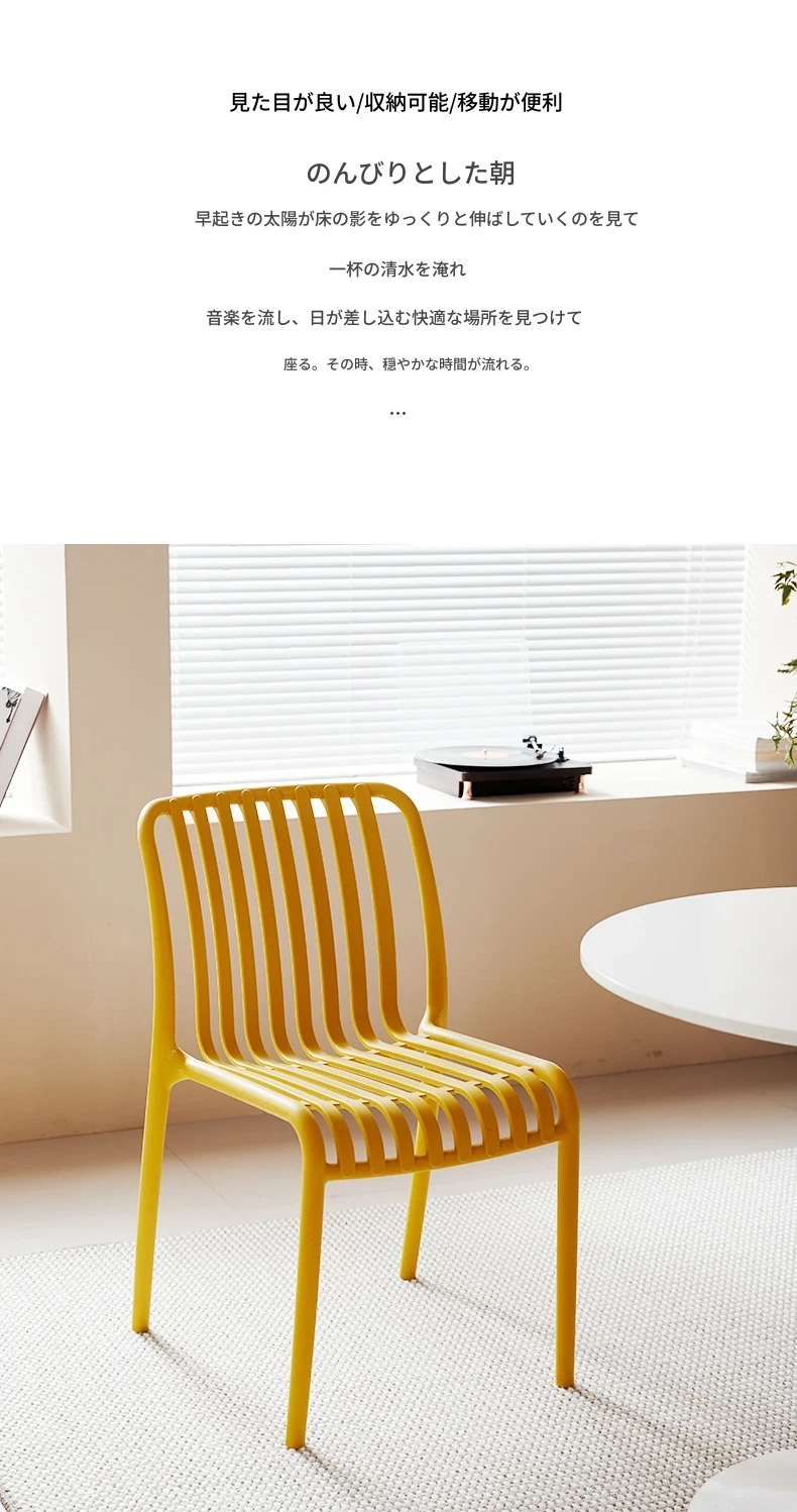 シンプルでスタイリッシュな家庭用プラスチック製ダイニングチェア!積み重ね可能で、リラックスできるアームチェアやバルコニー用、アウトドアやビーチにも最適。快適さと便利さを兼ね備えた一品です!