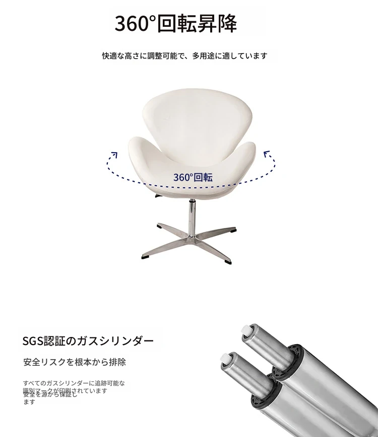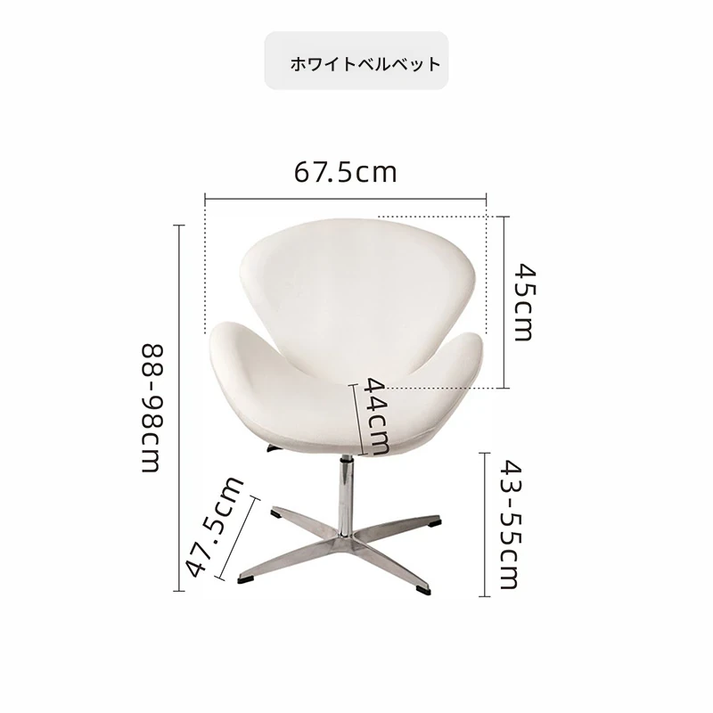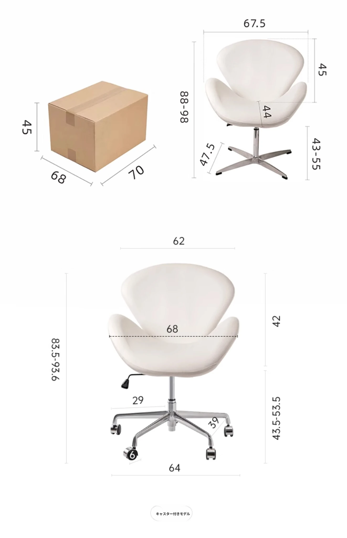 パッケージ型スワンチェア|人気のミニソファ|快適な座り心地|シンプルな無地デザイン|コンパクトなスペースに最適|昇降式オフィスチェア|化粧台スツールとしてもおすすめ!