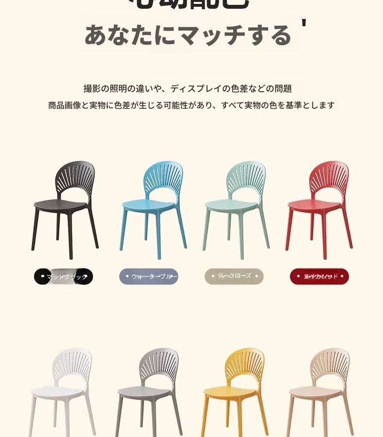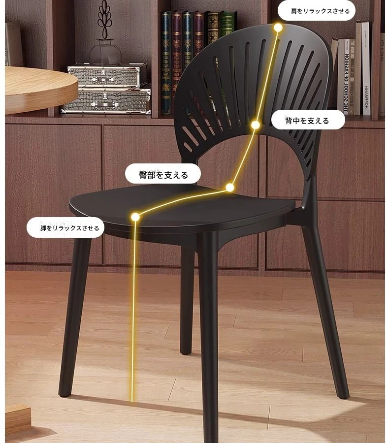 家庭用加厚プラスチック製ダイニングチェア|商業利用にも最適なリラックス背もたれ椅子|モダンでシンプルなデザイン|おしゃれなネットトレンドの貝殻型椅子|快適さとスタイルを両立!