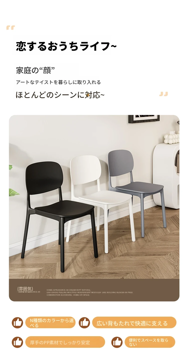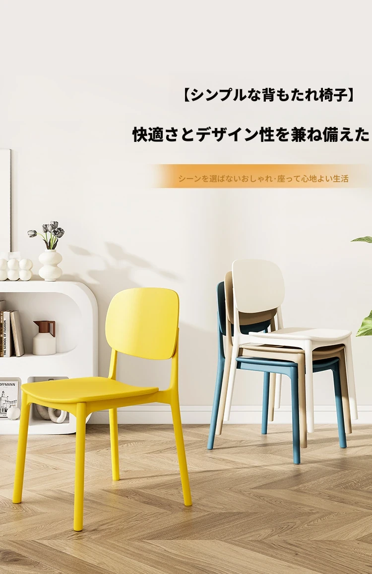 厚手のプラスチック製チェア|モダンでシンプルなデザイン|家庭用・飲食店用に最適|スタッキング可能なダイニングチェア|リラックスできる背もたれ付き|快適な食事体験を提供します!