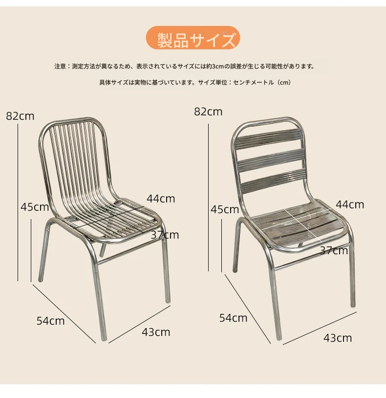 304円管型背もたれ椅子【特厚1.0】ステンレス色