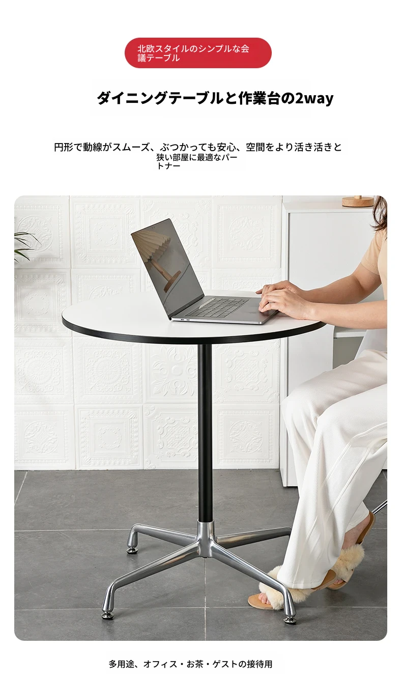 Bevel edge round table White [black column]]