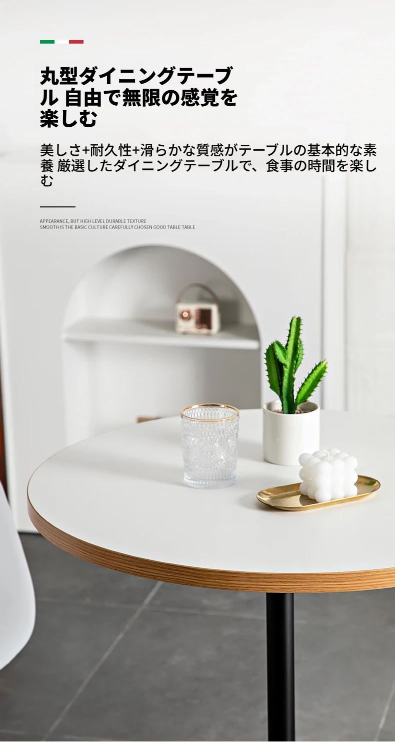 Wood grain round table White [bright column]]