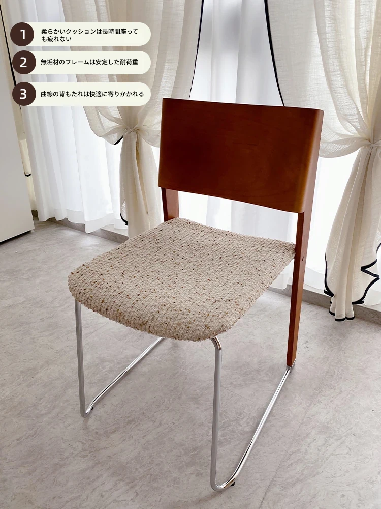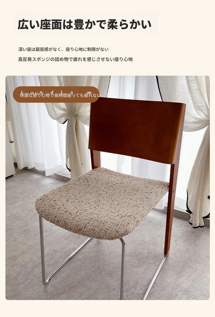 北欧風モダンデザインのカフェチェア - シンプルでスタイリッシュ、リラックスできる背もたれ付き!アイアンフレームで高級感あり、化粧やネイル、デスクワークにも最適な一品。あなたのインテリアを格上げする、快適な座り心地を体験してください!