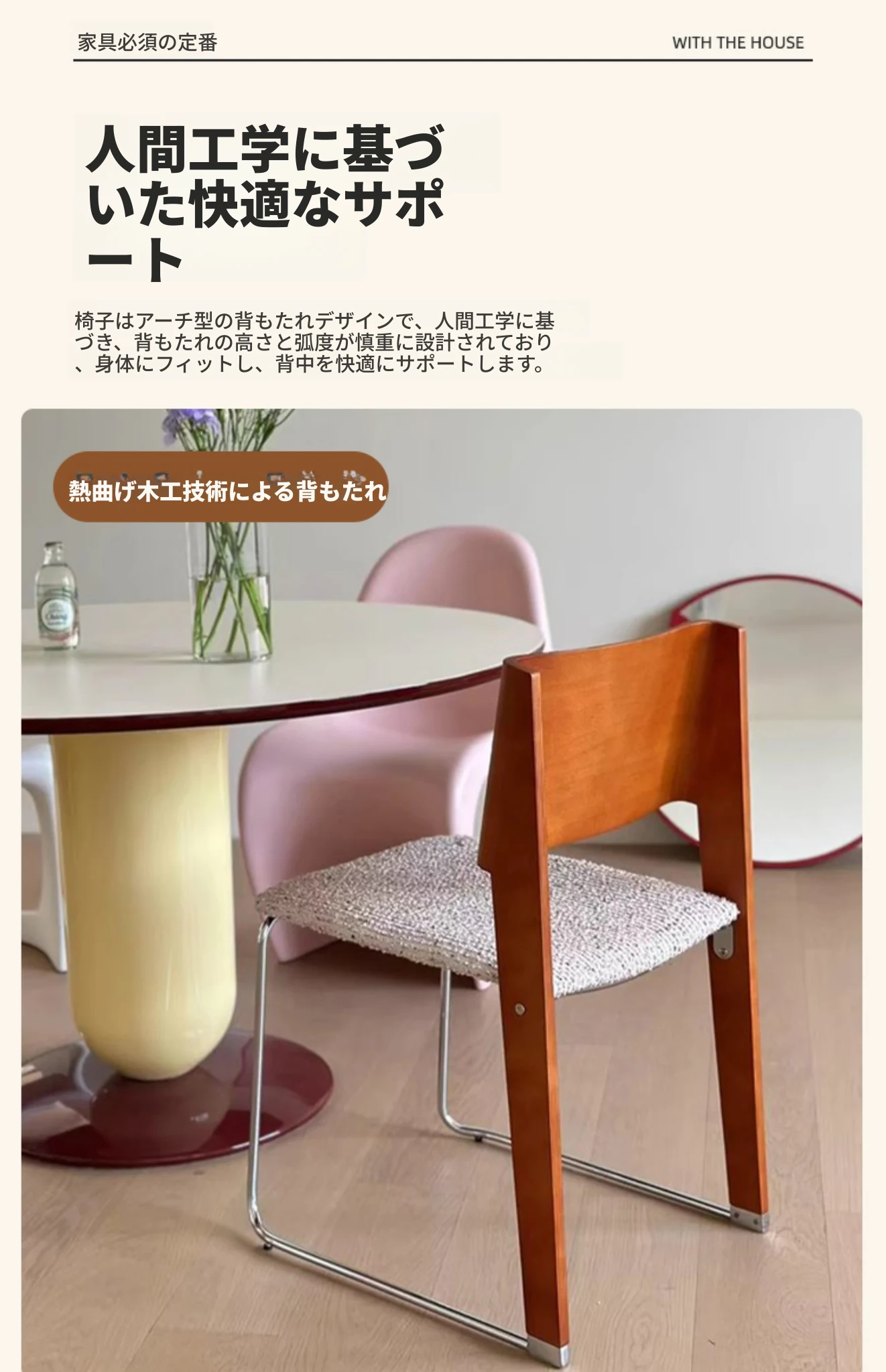 イタリアンミニマリストダイニングチェア|クリーム風デザインの布張り&本革|ラグジュアリーな食卓や書斎にぴったりの快適な背もたれ付き椅子!おしゃれで使い勝手抜群!