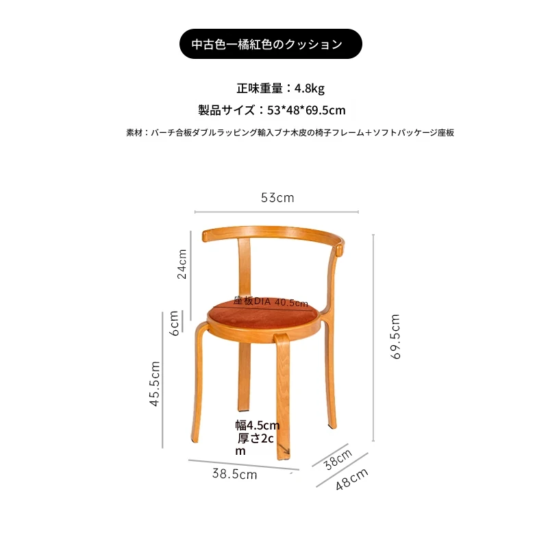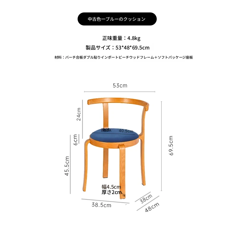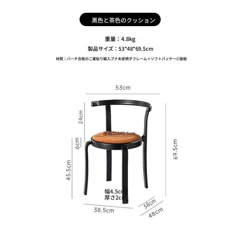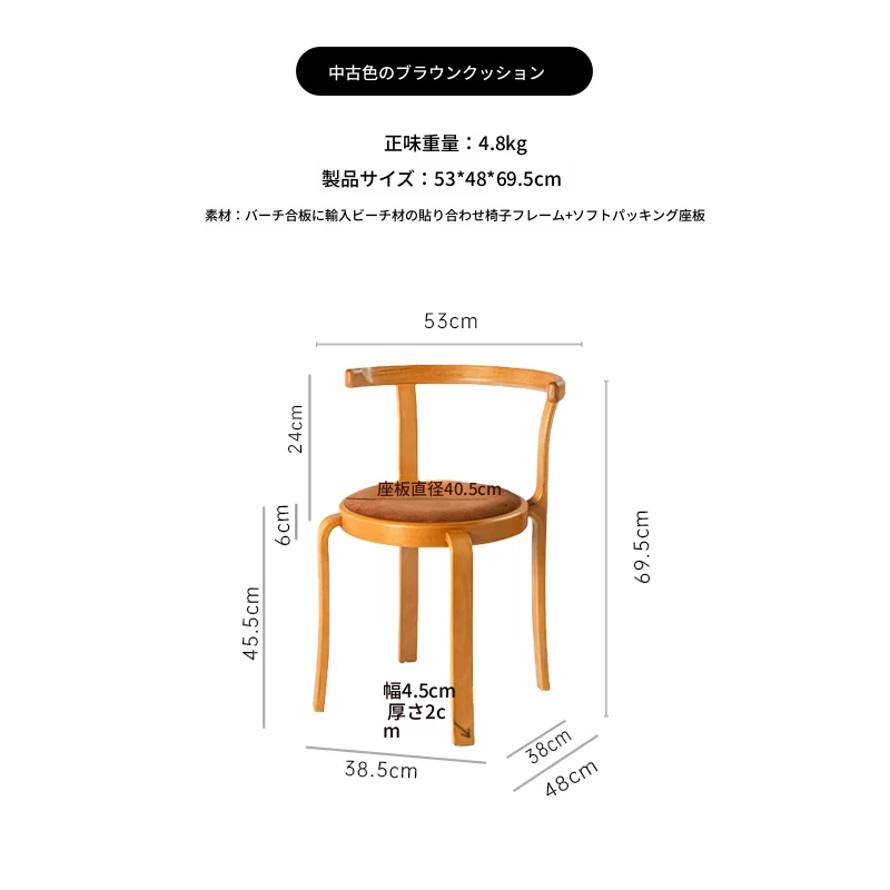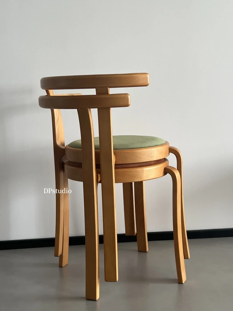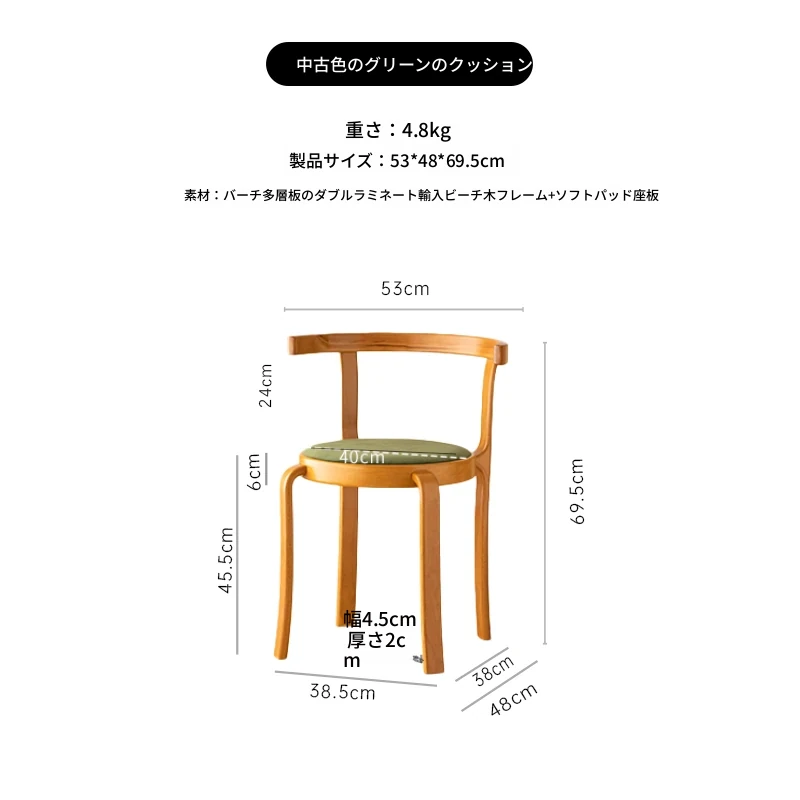 ヴィンテージデザインの木製ダイニングチェア - スペースに優しいコンパクトサイズ、スタッキング可能!高級感あふれるソフトクッション背もたれで、快適な食事時間を演出。おしゃれな家にぴったり!
