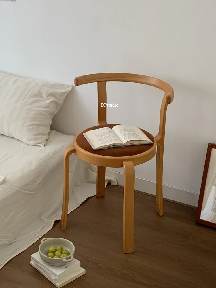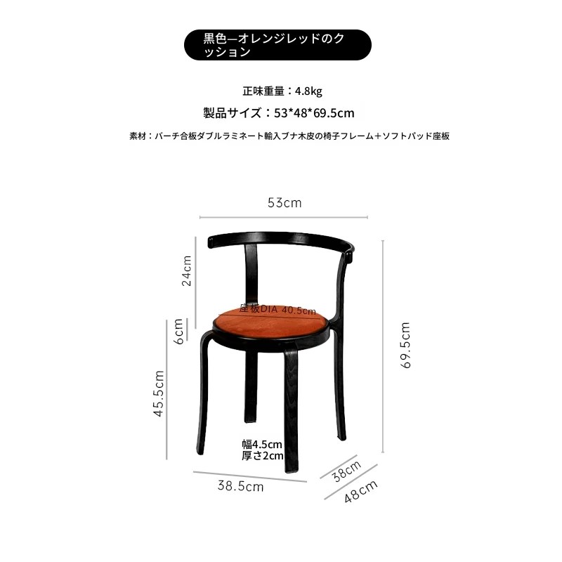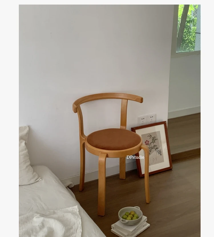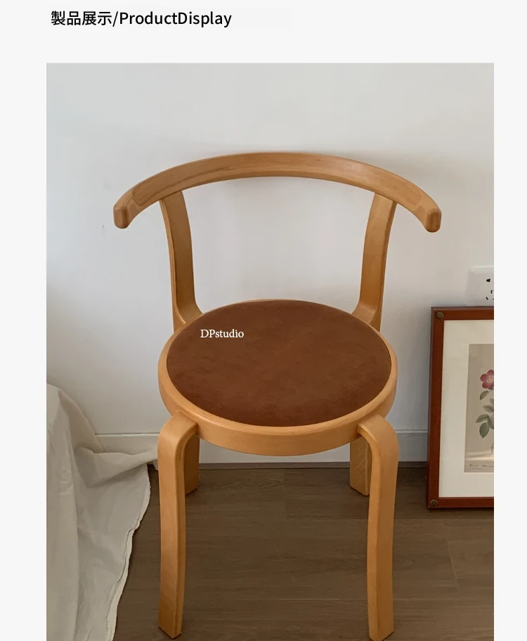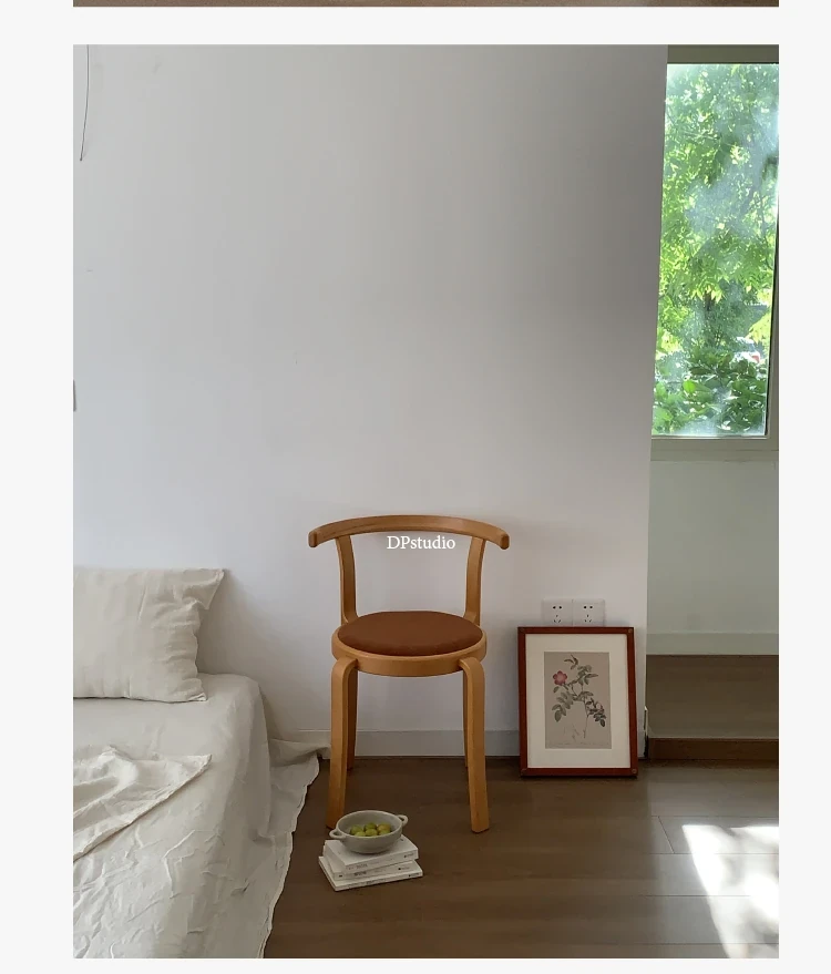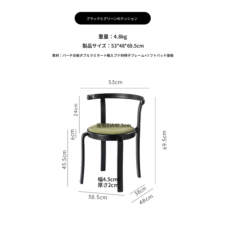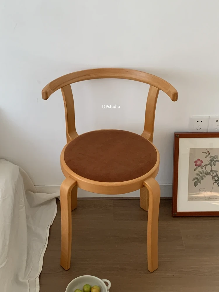 ヴィンテージデザインの木製ダイニングチェア - スペースに優しいコンパクトサイズ、スタッキング可能!高級感あふれるソフトクッション背もたれで、快適な食事時間を演出。おしゃれな家にぴったり!