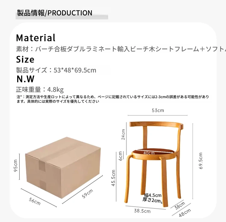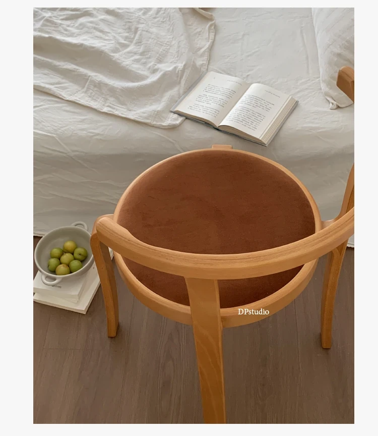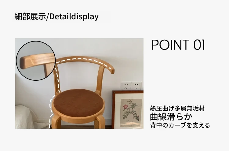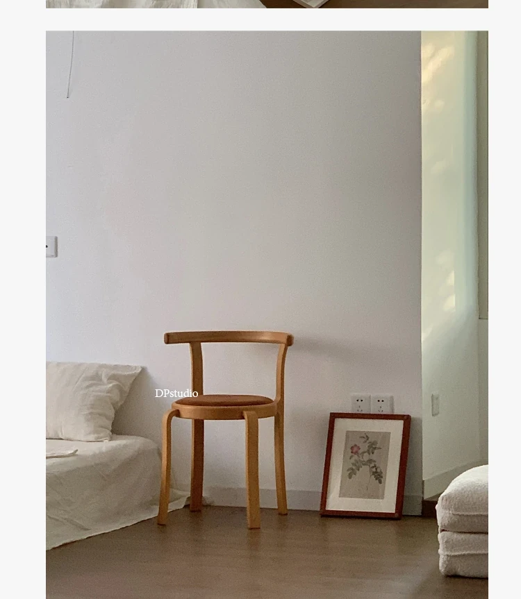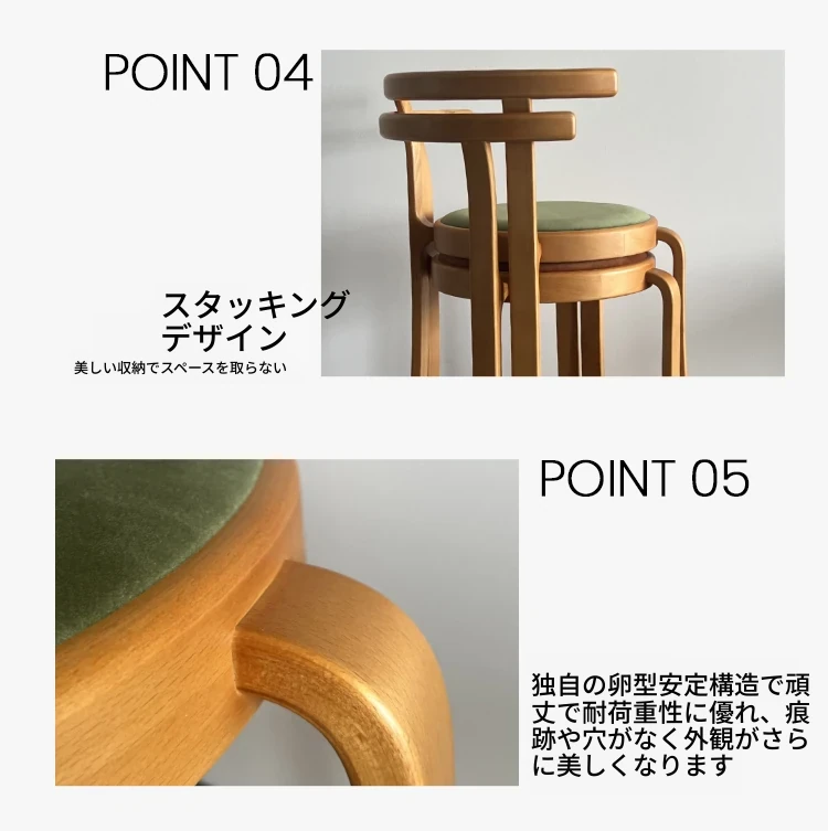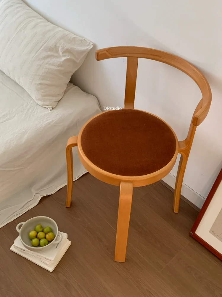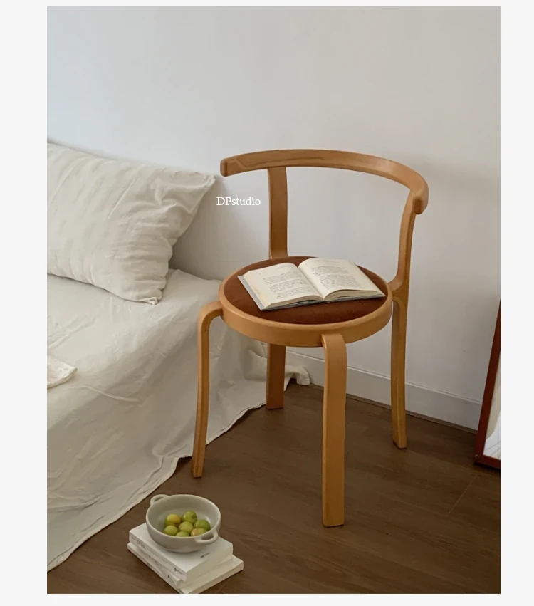 ヴィンテージデザインの木製ダイニングチェア - スペースに優しいコンパクトサイズ、スタッキング可能!高級感あふれるソフトクッション背もたれで、快適な食事時間を演出。おしゃれな家にぴったり!