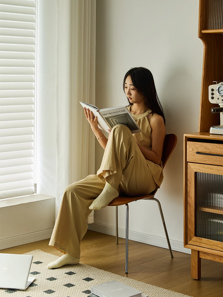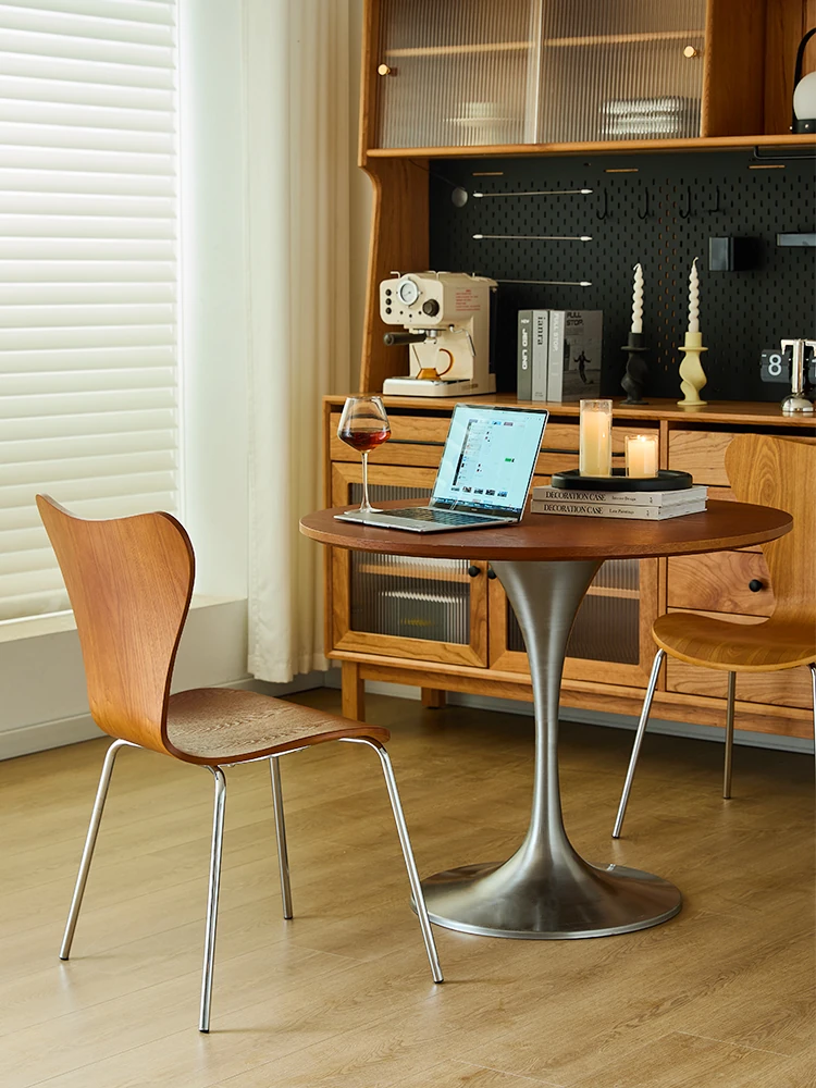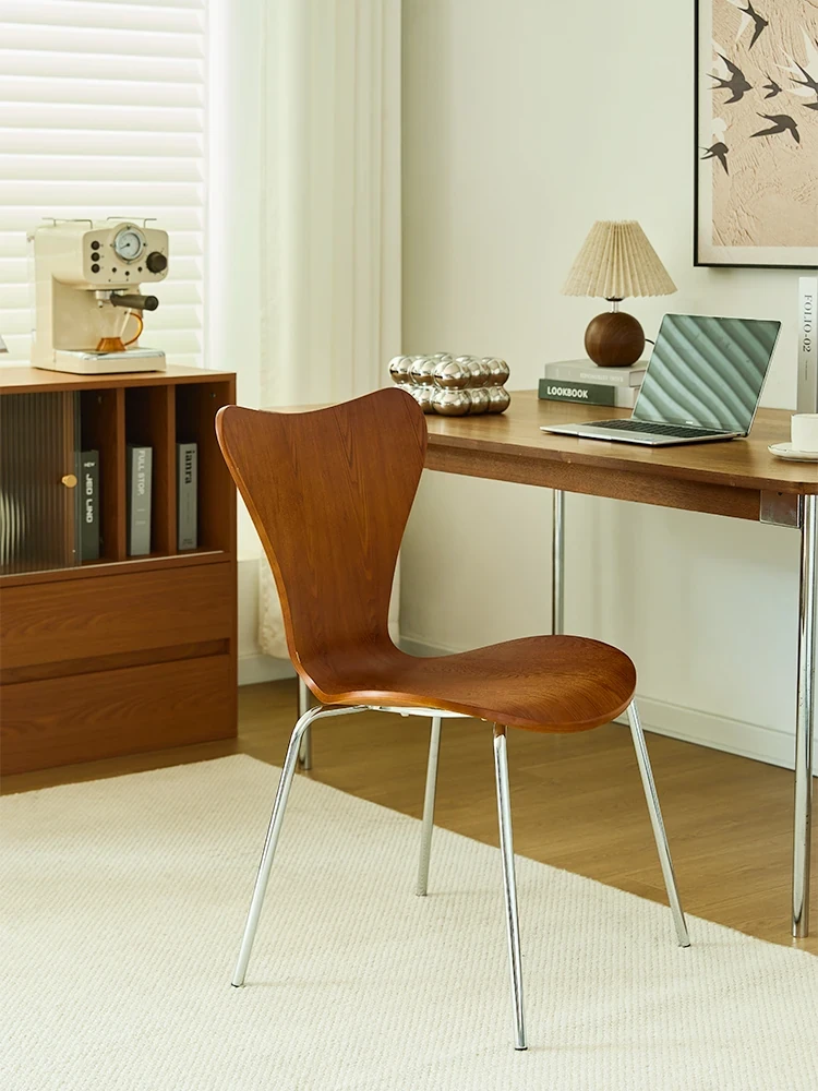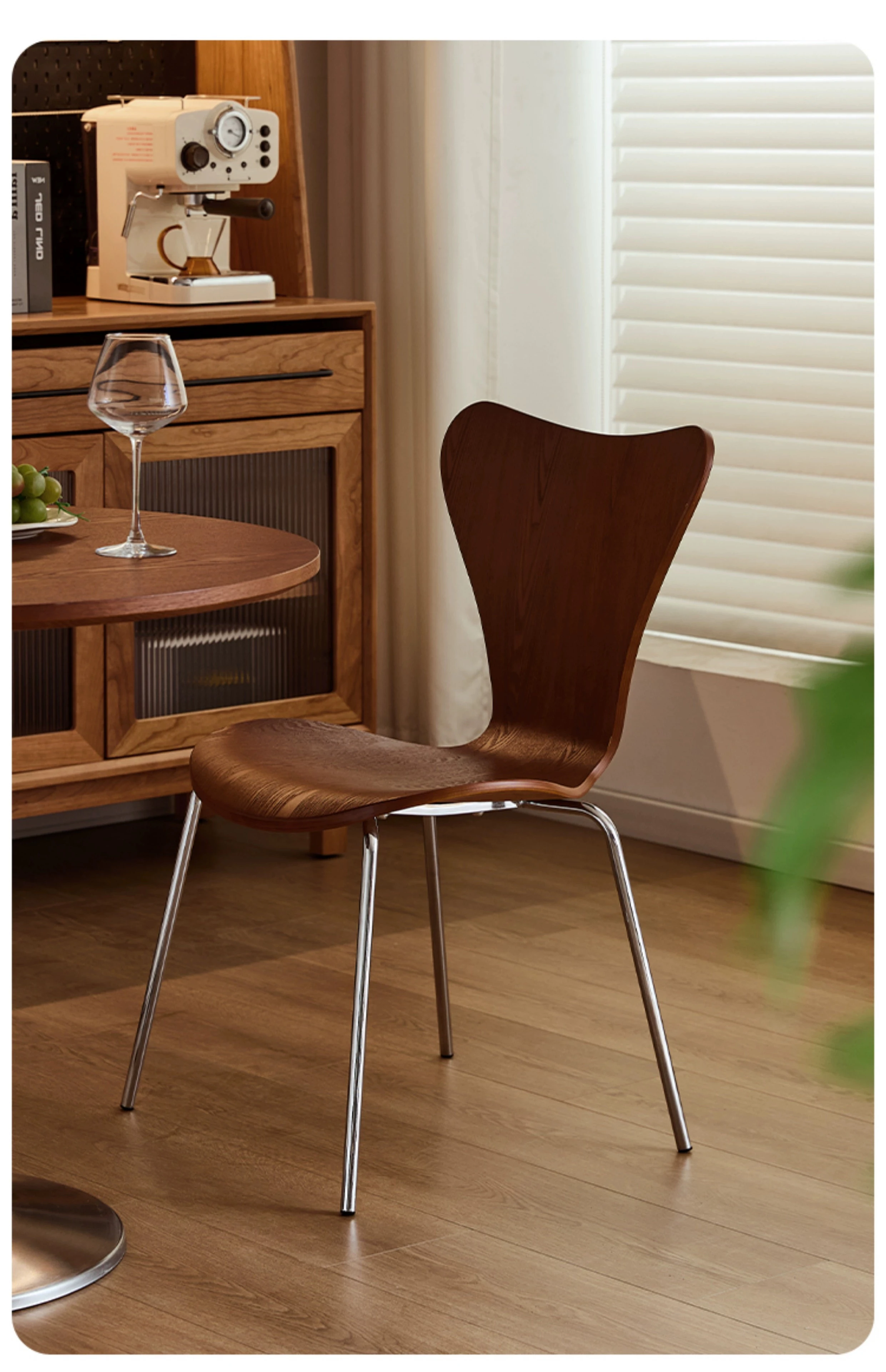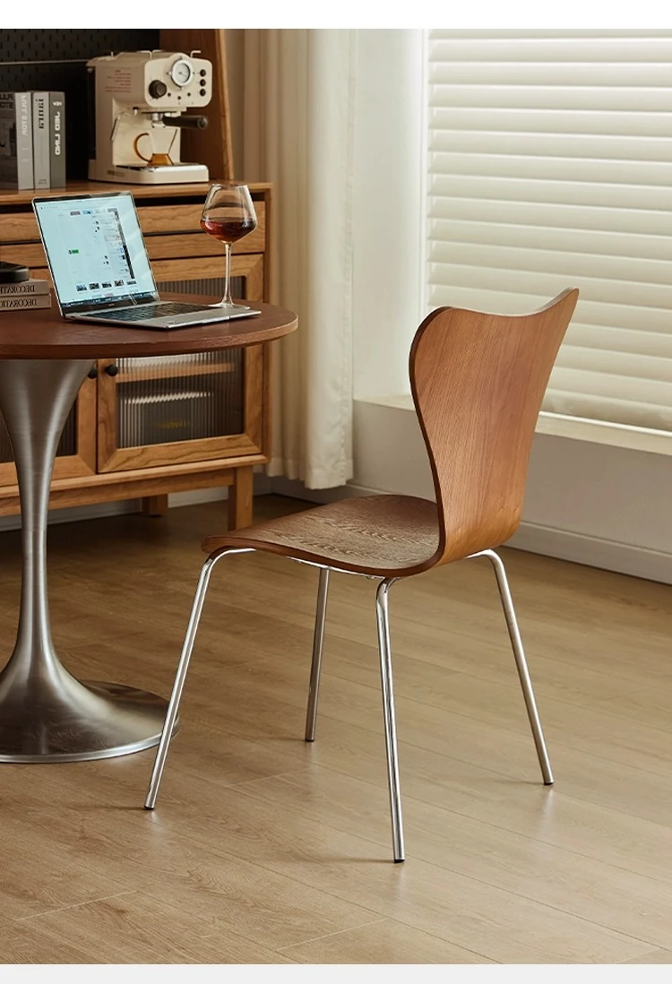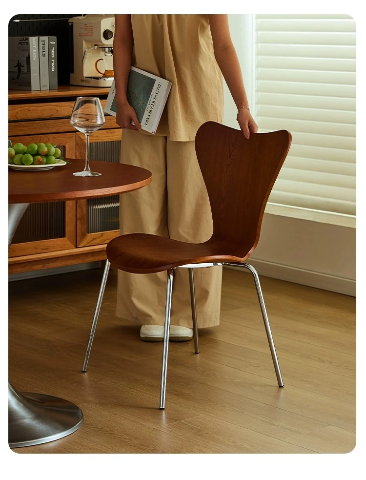 レトロ風無垢材バックレストダイニングテーブルチェアセット|おしゃれでスタッカブルな家庭用チェア|カフェやリラックススペースにぴったりな人気の椅子!