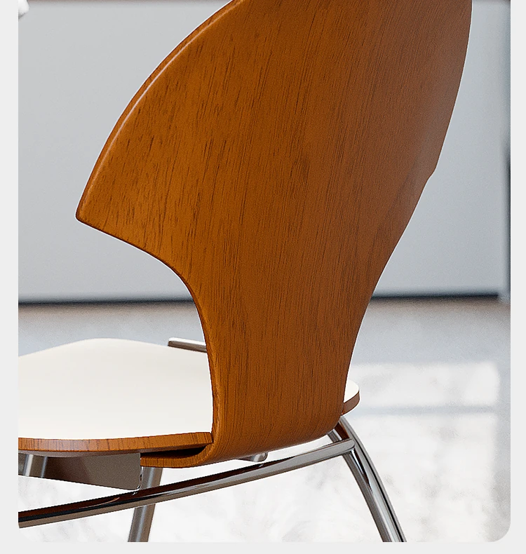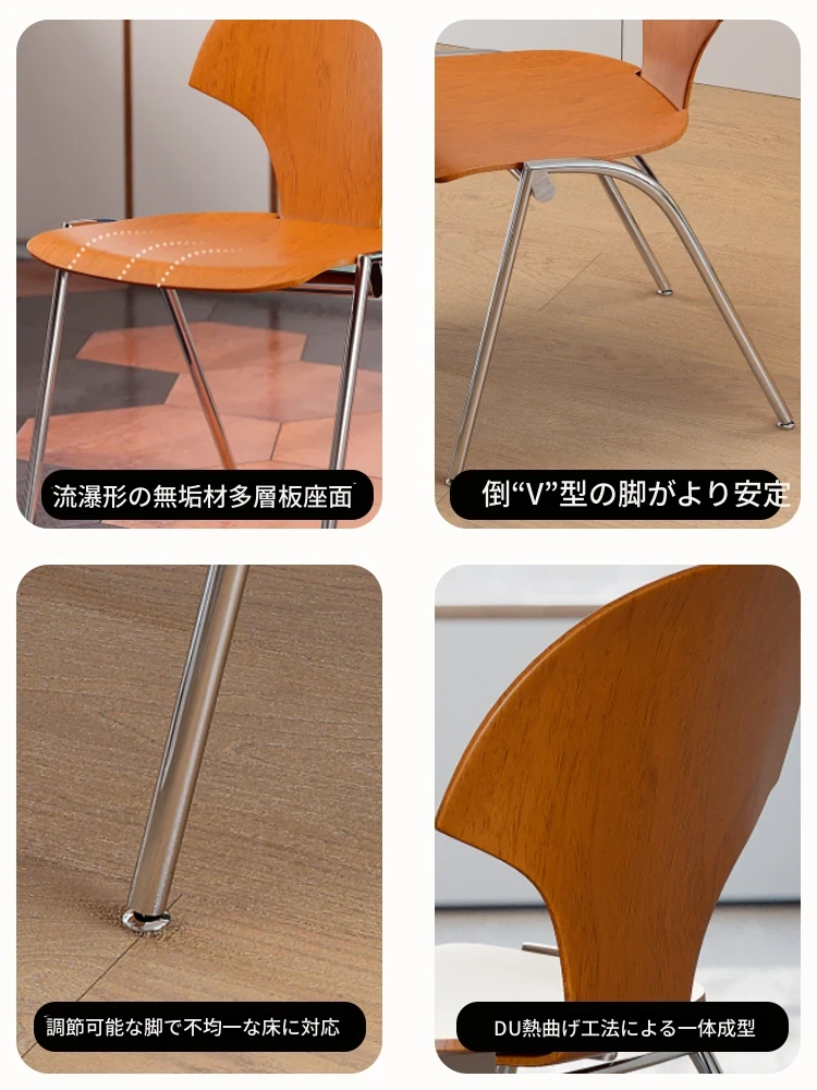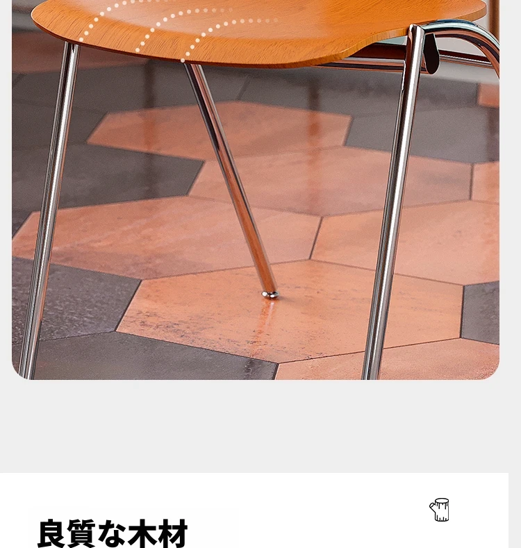 中古ステンレス製ダイニングチェア - 侘び寂びデザインの銀杏チェア、レトロスタイルの家庭用ダイニングチェア、天然木製テーブルにぴったり!おしゃれで快適な食卓空間を演出します。