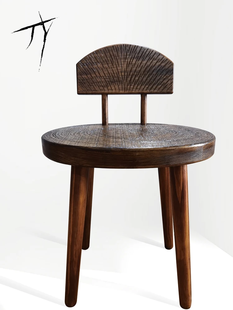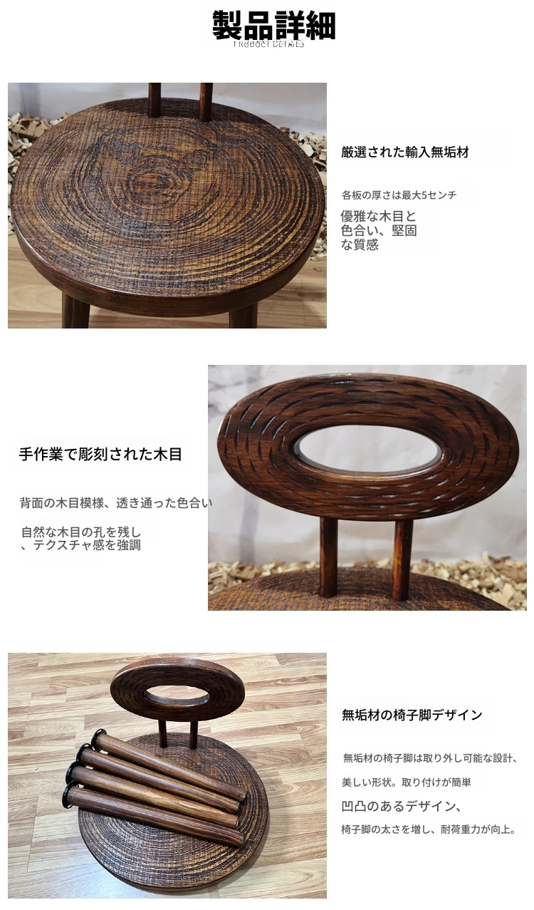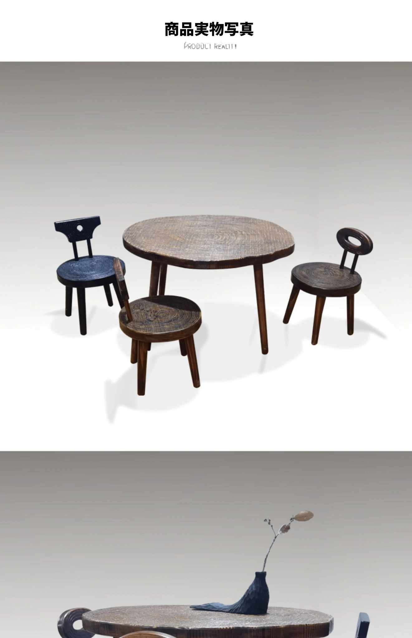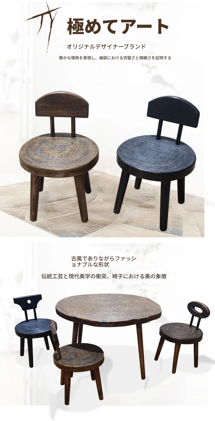 侘寂風の本格木製アートダイニングテーブル&チェアセット|書斎用・ティーテーブル・ドレッサーチェア・シューズベンチ|小型スペースに最適なヴィンテージスタイル!